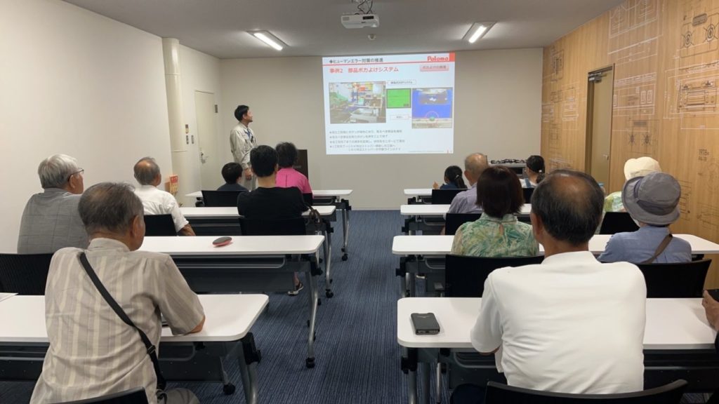 パロマ恵那工場では。カセットコンロが主力で製品ですが、工場内はきれいに整頓され、製品のできあがる工程に参加者も興味深く見学していました。