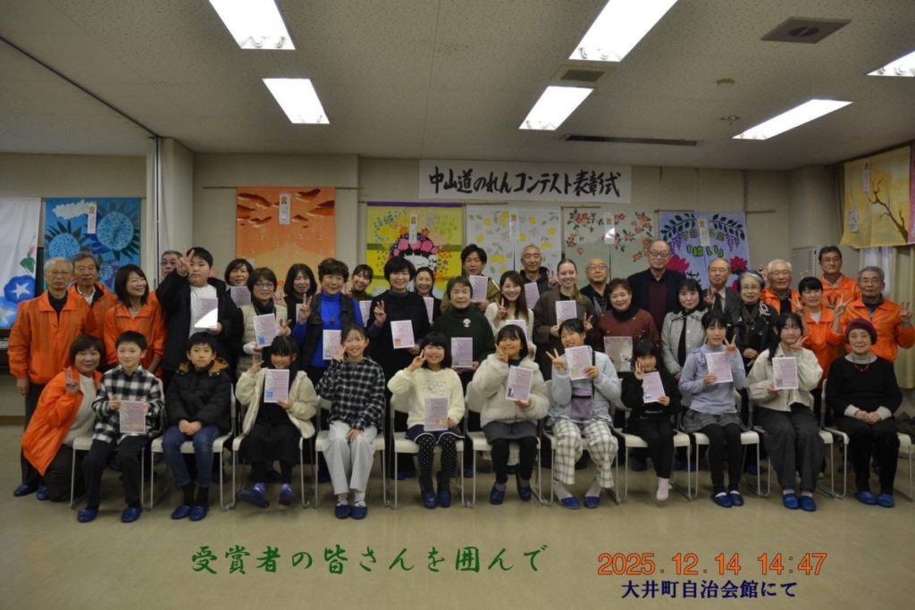 のれんコンテスト授賞式が行われました 公開済み: 2025年12月15日更新: 2025年12月15日作成者: 大井振興室 12月14日(日)大井町自治会館で「第16回中山道のれんコンテスト授賞式」が開催されました。今回の応募総数は144点。その中から23の個人・団体の方が受賞されました。受賞されたみなさま、おめどうございます。 授賞式の最後は、恒例となったおたのしみ抽選会で幕をとじました。