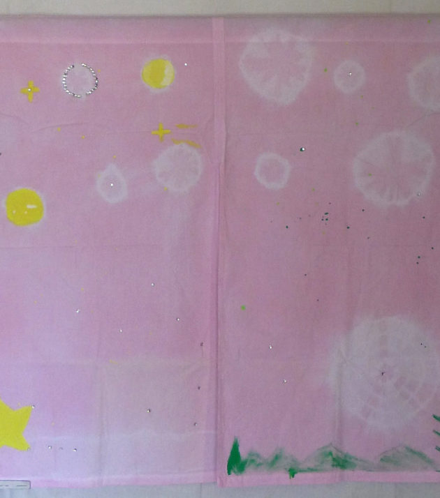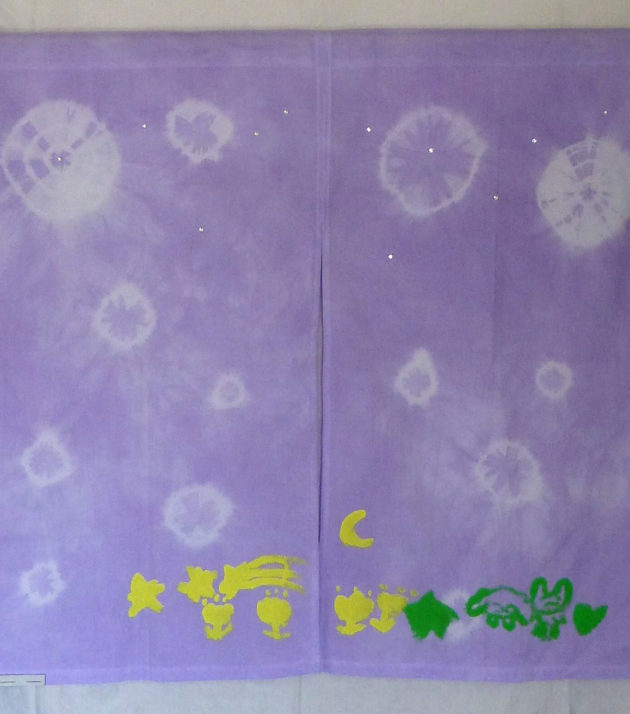説明夜でキラキラとかがやく月を工夫しました。かがやく空がお気に入りです。