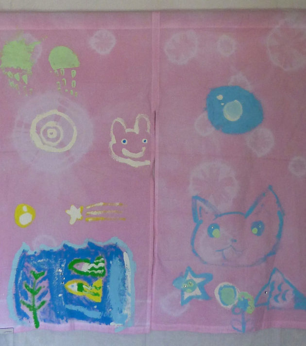 説明いろいろな色を使って魚やねこを描いたところが気に入っています。