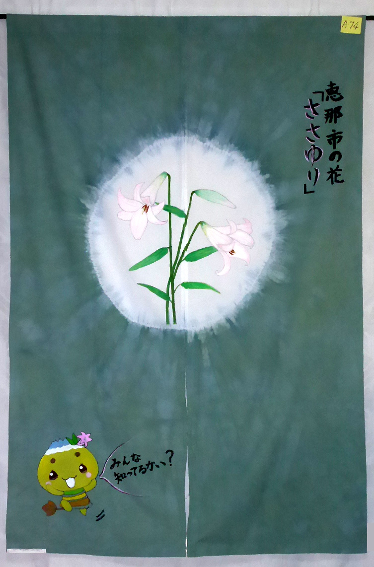 説明 色々迷いましたが、恵那市の花にしました。手持の紺色の染粉で染めたら空色でした。慌てて又青色を混ぜてこの色になりました。希望の地色にならなかったのが、残念でした。