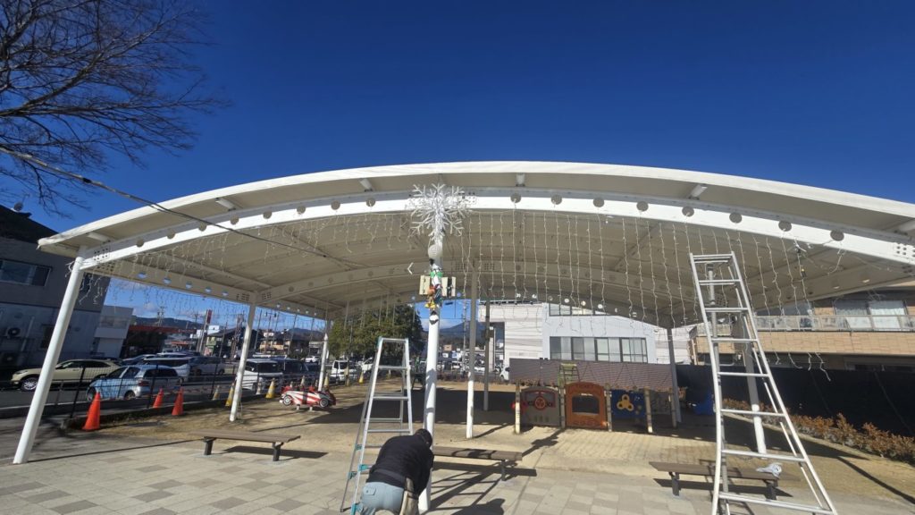 12日に大井町、長島町の防犯パトロールの構成員の有志の方で中央公園のイルミネーションの設置作業を行いました。寒いなか皆さんのお力で事故もなく終了できました。ありがとうございました。